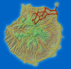 Ruta Norte: nuestra ruta trascurre en la zona más húmeda de la isla de gran canaria, desde la costa hasta los pueblos de campo que se encuentran a lo largo de los escarpados barrancos y altiplanos que nos encontráremos en nuestro trayecto por el norte, luego volveremos a bajar al nivel de costa para acabar en un pueblo costero antiguamente de pescadores, Agaete, en el mismo podremos apreciar los altísimos precipicios que acaban justo en el mar.